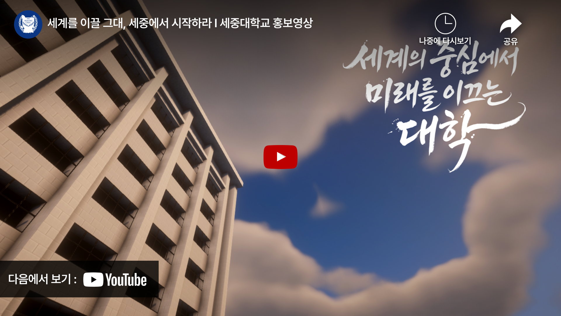 | 세중대학교 홍보영상 세계를 이끌 그대, 세중에서 시작하라 |